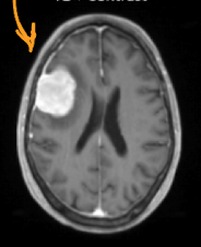 **- enhances arteries and vascularly abnormal tissues (tumors, abscess)