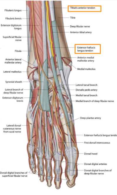 What does the anterior tarsal tunnel contain?