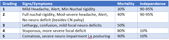 * Prevented with nimodipine 60mg q4-6hr PO/NG 1/52