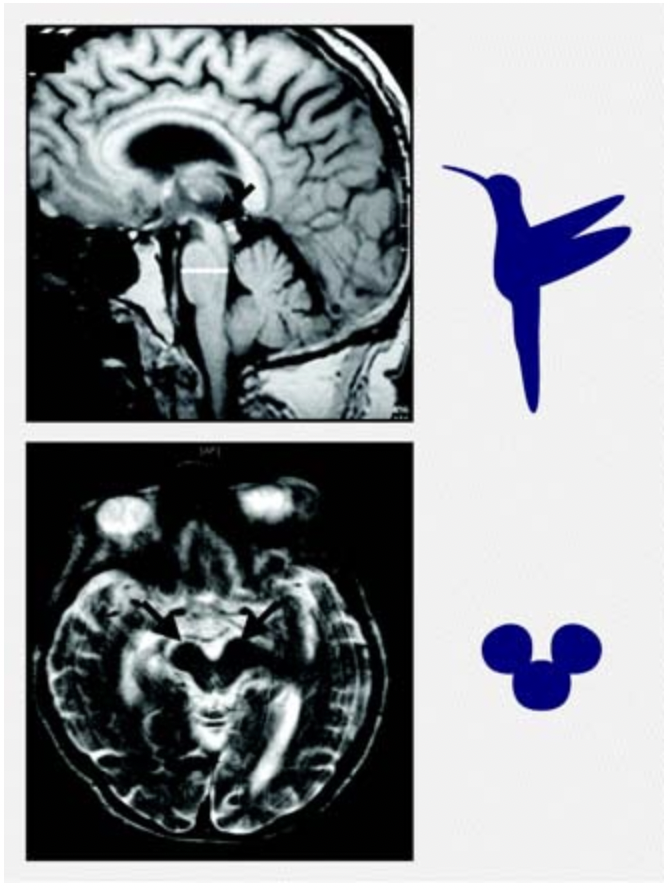Midbrain atrophy on MRI presenting as “Mickey Mouse “ and “Hummingbird” Signs