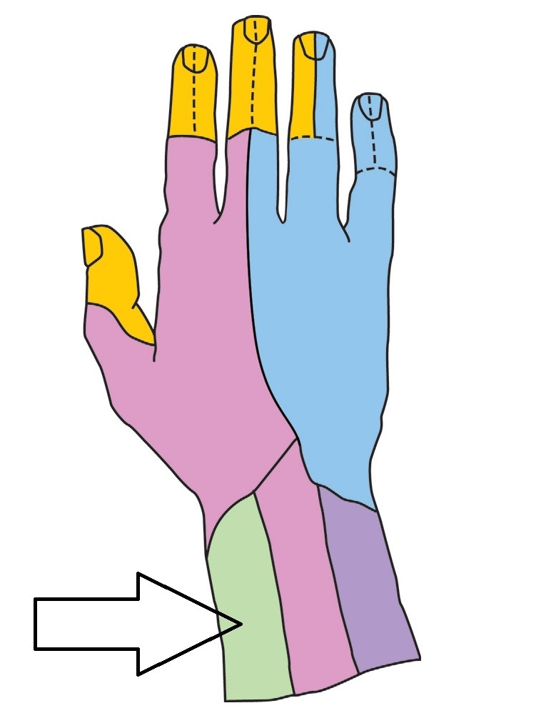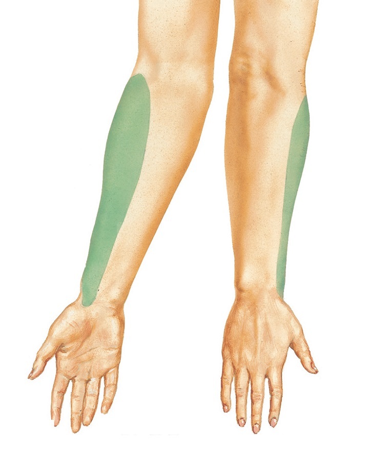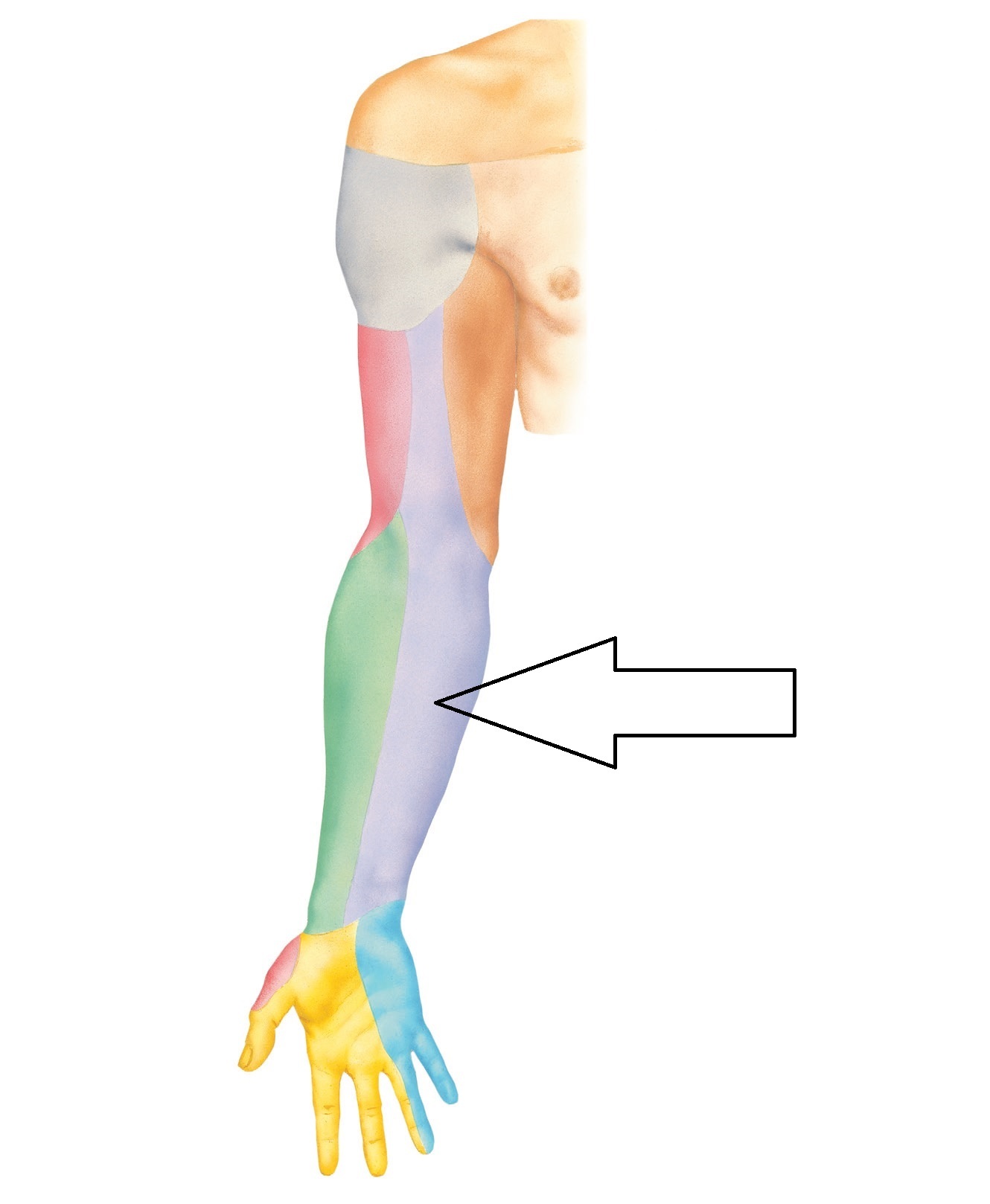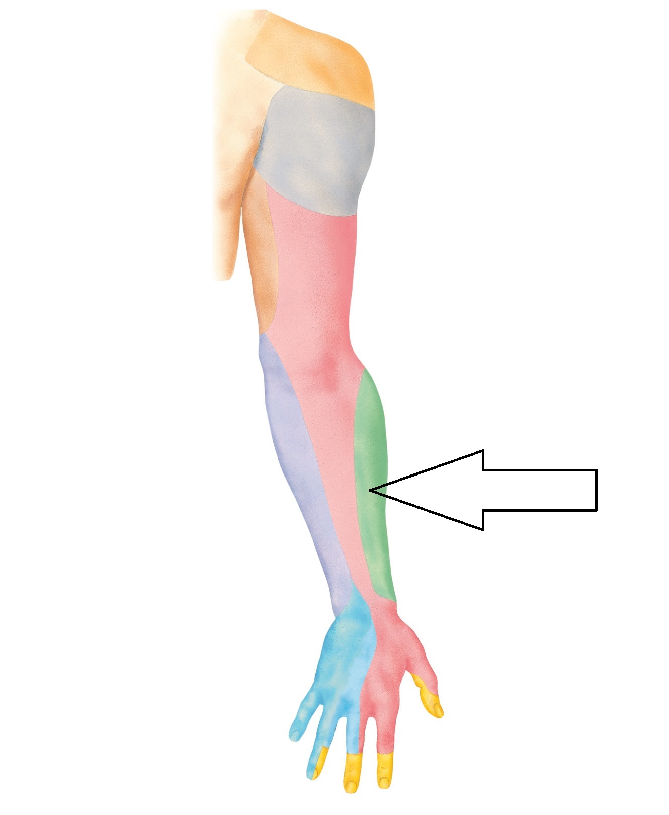 Lateral cutaneous nerve of forearm (from musculocutaneous)