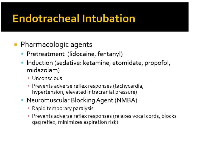 What pharmacologic agents are needed for endotracheal intubation?