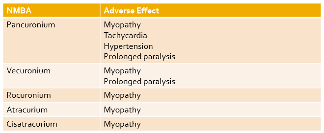 Pancuronium, Vecuronium, Rocuronium, Atracurium, and Cisatracurium all cause myopathy