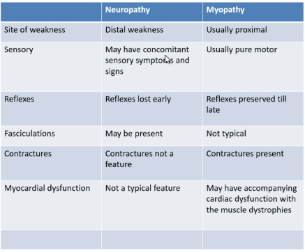 What is the difference between neuropathy and myopathy: