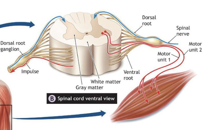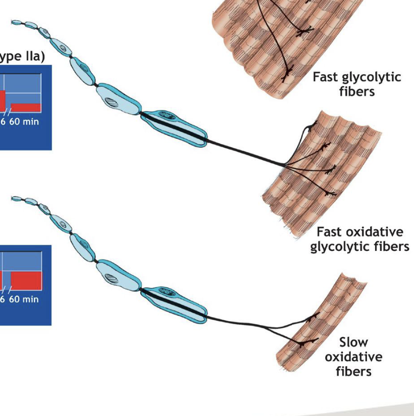 2) Sensory nerves (afferent) from muscle back to brain