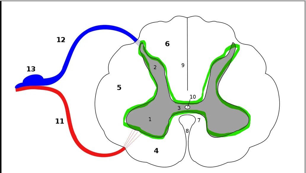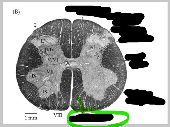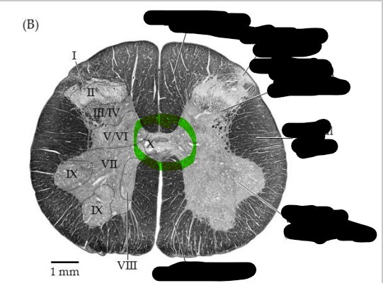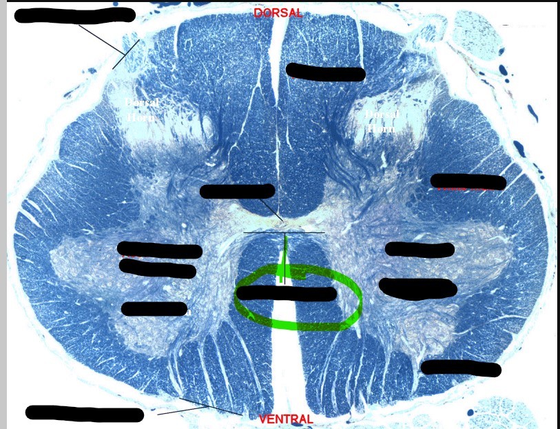 horizontal bar of gray matter that surrounds the central canal; primarily contains unmyelinated axons and serves as a communication route between the right and left sides of the gray matter