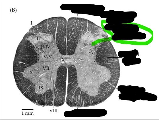 left and right posterior masses of gray matter; axons of sensory neurons and the cell bodies of interneurons located here
