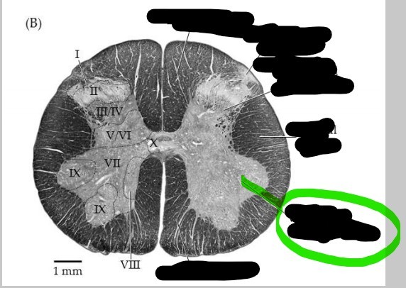 slight protrusion of gray matter of spinal cord into the lateral funiculus of either side; present only in the thoracic and upper lumbar