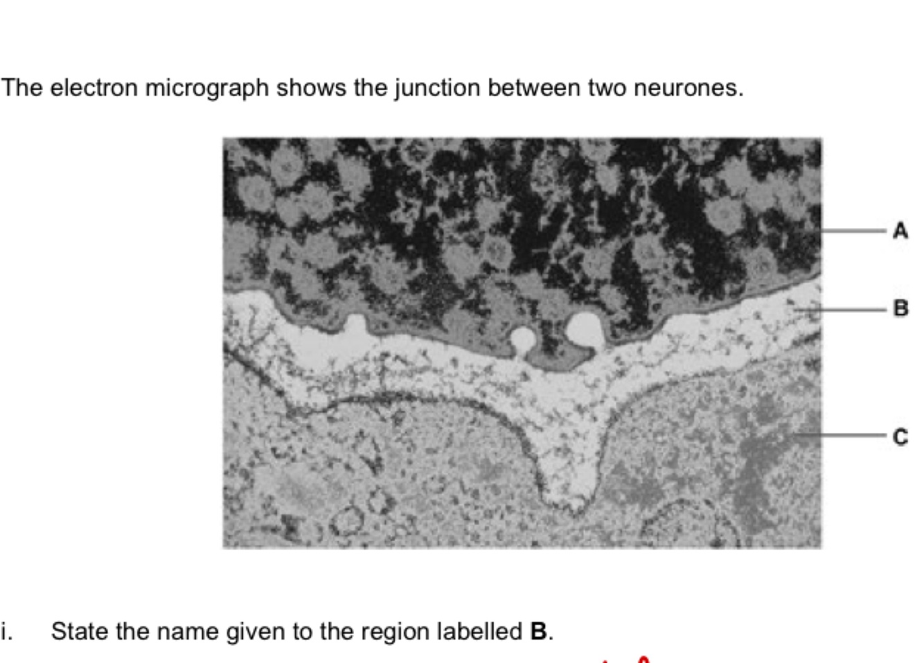 A is a synaptic cleft. Structure a has vesicle