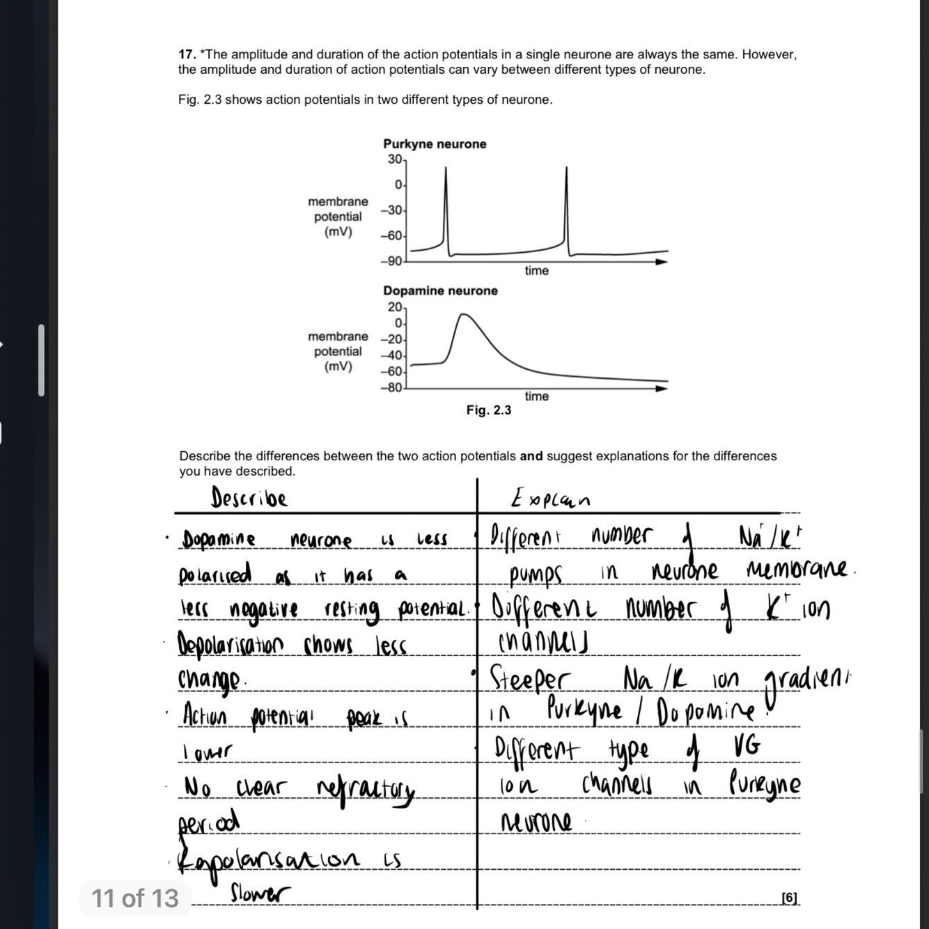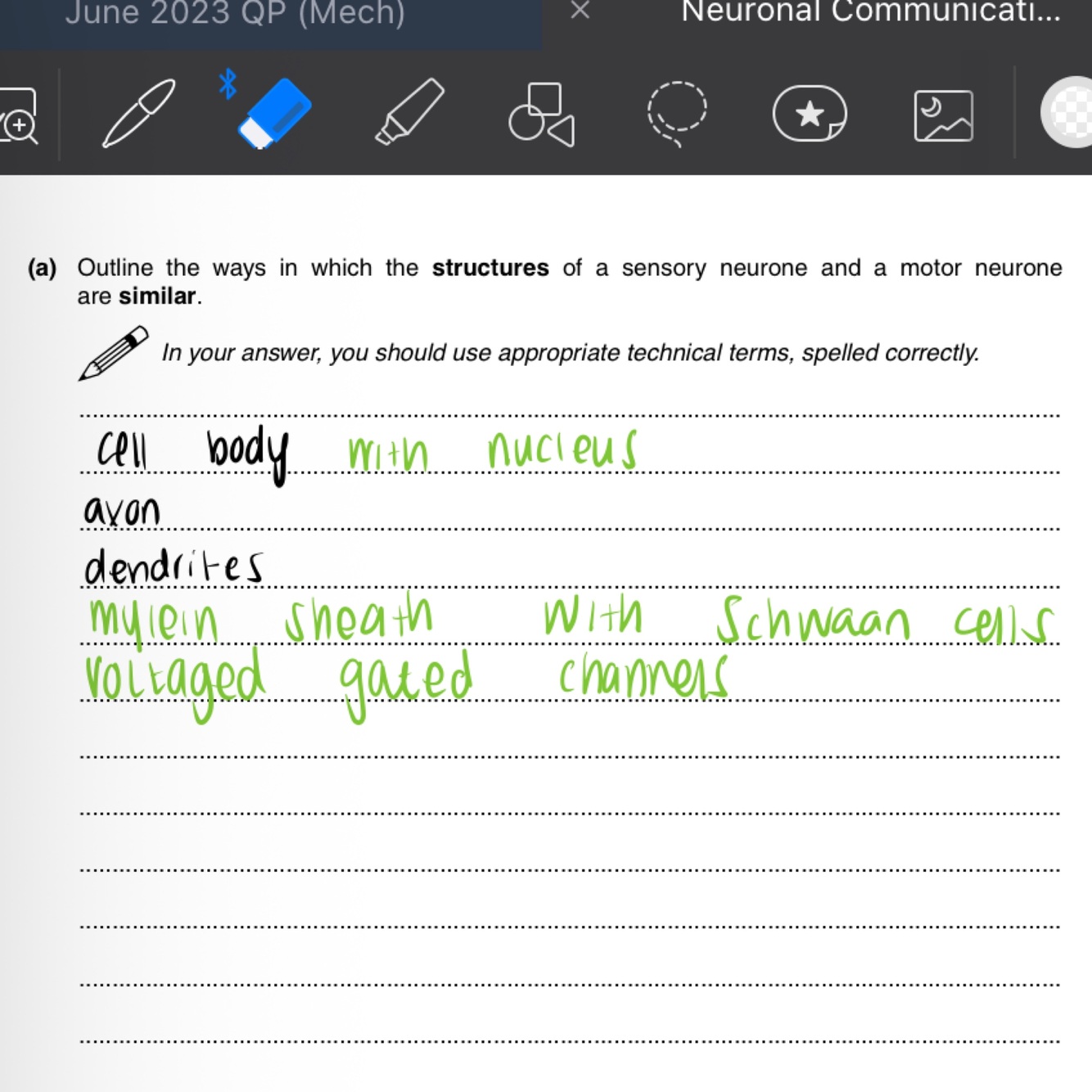 A motor neuron has the cell body on one end and then rights coming out whereas the sensor neuron has a hanging cell body in the middle