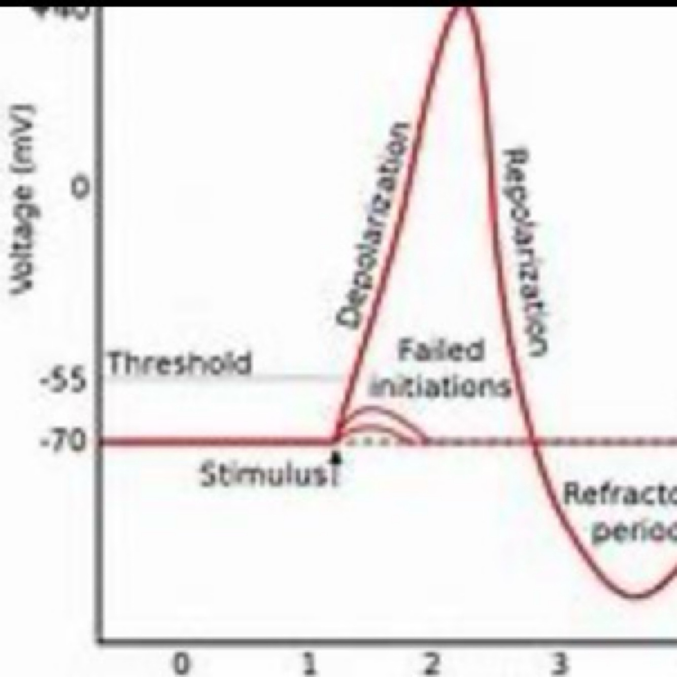 No action potential no impulse conducted along axon so no release of neurotransmitter