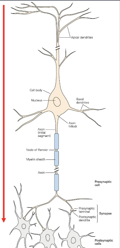 Information is received primarily by the dendrites and soma, but synaptic inputs can also be found in axons and axon terminals.