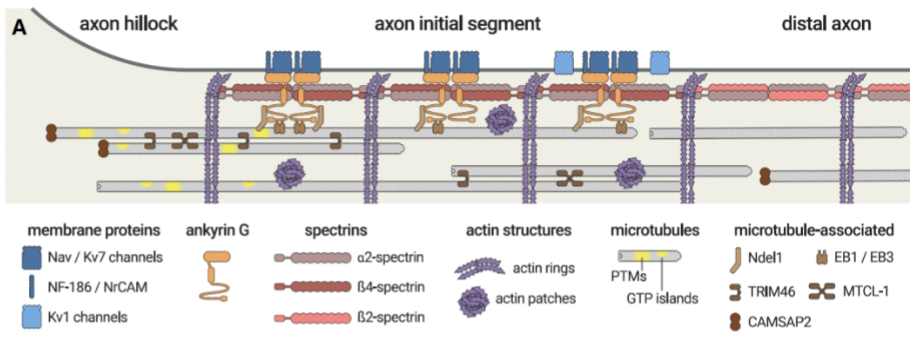 It anchors voltage gated channels to microtubules (cytoskeleton).