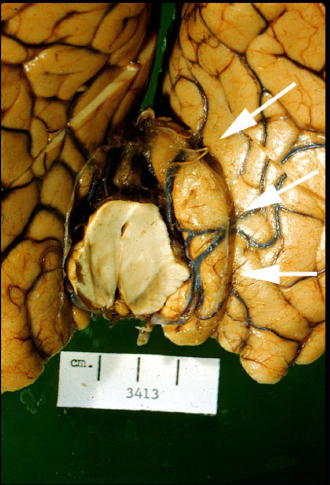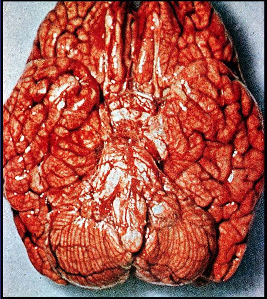 Untreated causes rapid influx of oedema, neutrophil influx causes pus → raises ICP leading to death if not quickly treated