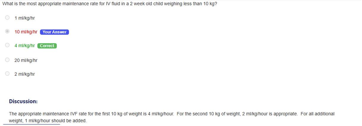 What is the most appropriate maintenance rate for IV fluid in a 2 week old child weighing less than 10 kg?
