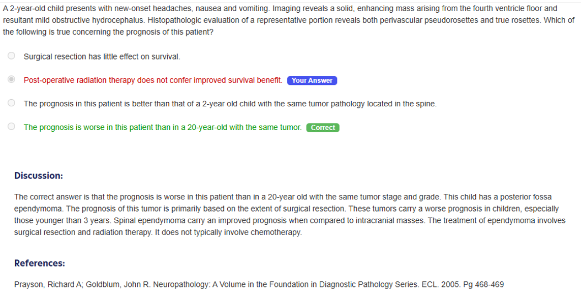 A 4-year-old male presents with new onset headaches, nausea, and vomiting and is found to have a posterior fossa tumor. The tumor