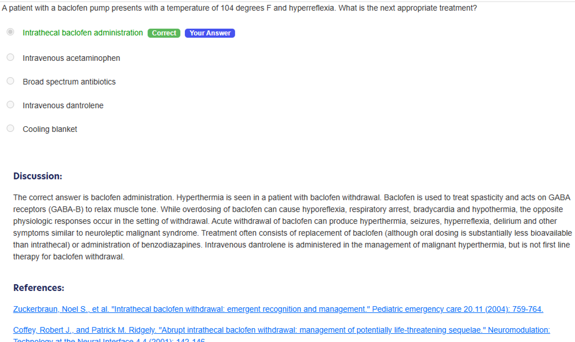A patient with a baclofen pump presents with a temperature of 104 degrees F and hyperreflexia. What is the next appropriate treatment?