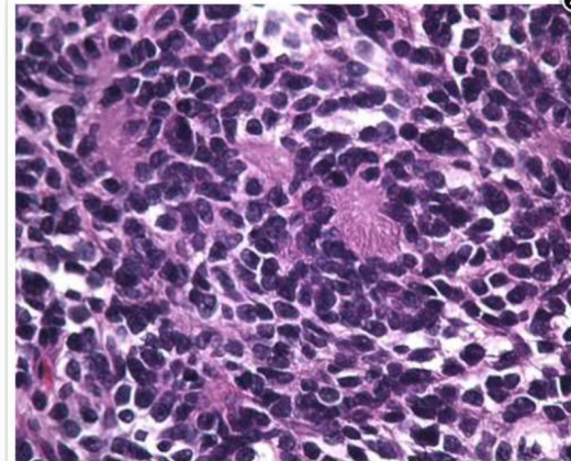 resultant mild obstructive hydrocephalus. Histopathologic evaluation ofa representative portion reveals both perivascular pseudorosettes and true rosettes. Which of