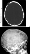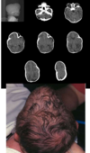 A 6-year-old with Down syndrome has a skull defect that has been present since birth (Figures 1 & 2). What is the correct diagnosis?
