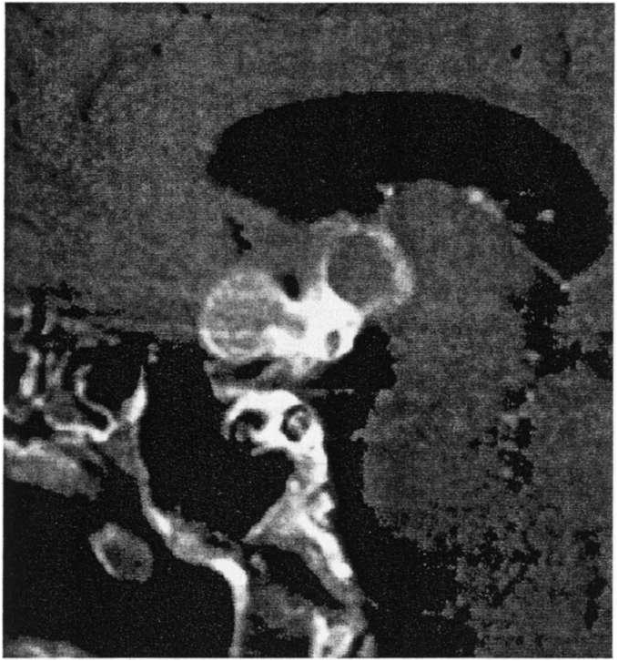 headaches and a bitemporal field cut. Her MRI is depicted below. Which of the following would be true