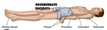 What are the features of decerebrate rigidity?