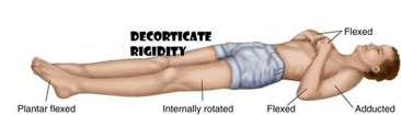 What are the features of decorticate rigidity?