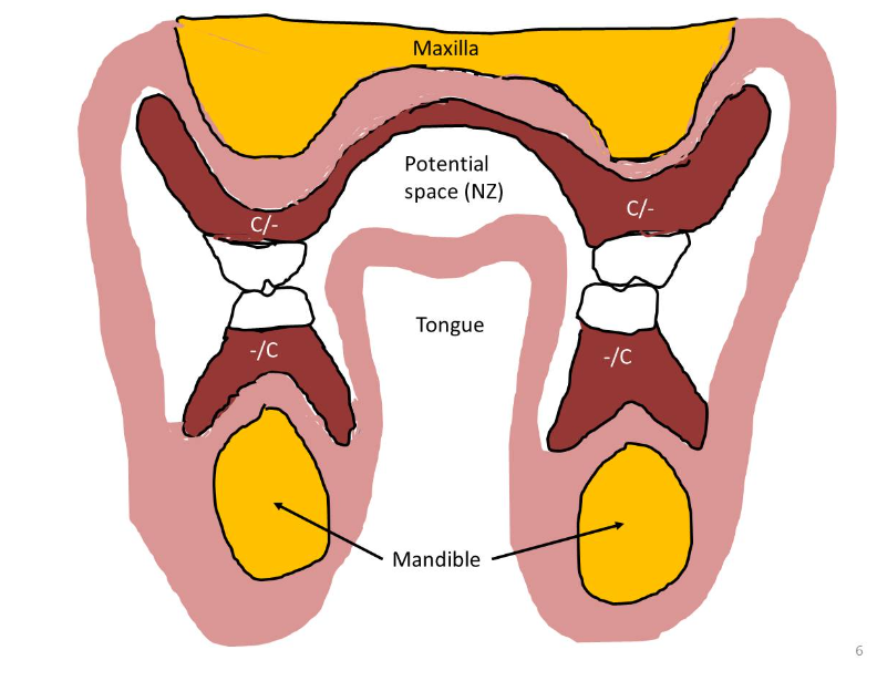 that area or position where the forces between the tongue and cheeks or lips are equal