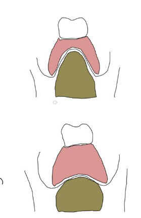 second image has a larger distance between the ridge and occlusal surface