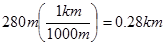 Convert 280m to km.
