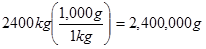 Convert 2400kg to g.