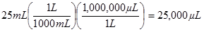 Convert 25mL to µL.