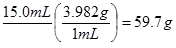 A liquid has a density of 3.982g/mL. What is the mass of a 15.0mL sample of the liquid?