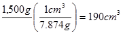 Iron has a density of 7.874g/cm3. What voulme does a 1,500g sample of iron occupy?