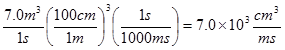 The discharge rate of a river is 7.0m3/s. Convert this rate to cm3/ms.