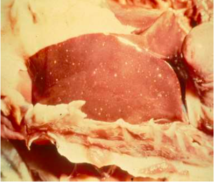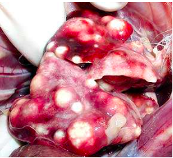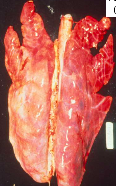 If combined with P. multocida can cause bronchopneumonia as shown below.