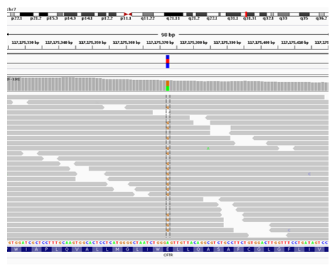 Diagram shows patient DNA sample which has been subjected to exome sequencing, reveals heterozygous mutation in the CFTR gene