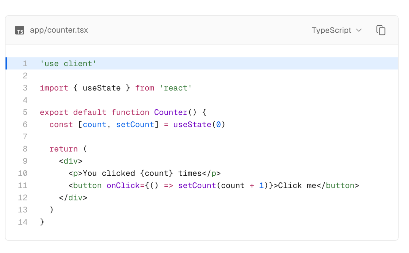 To use Client Components, you can add the React “use client” directive at the top of a file, above your imports.