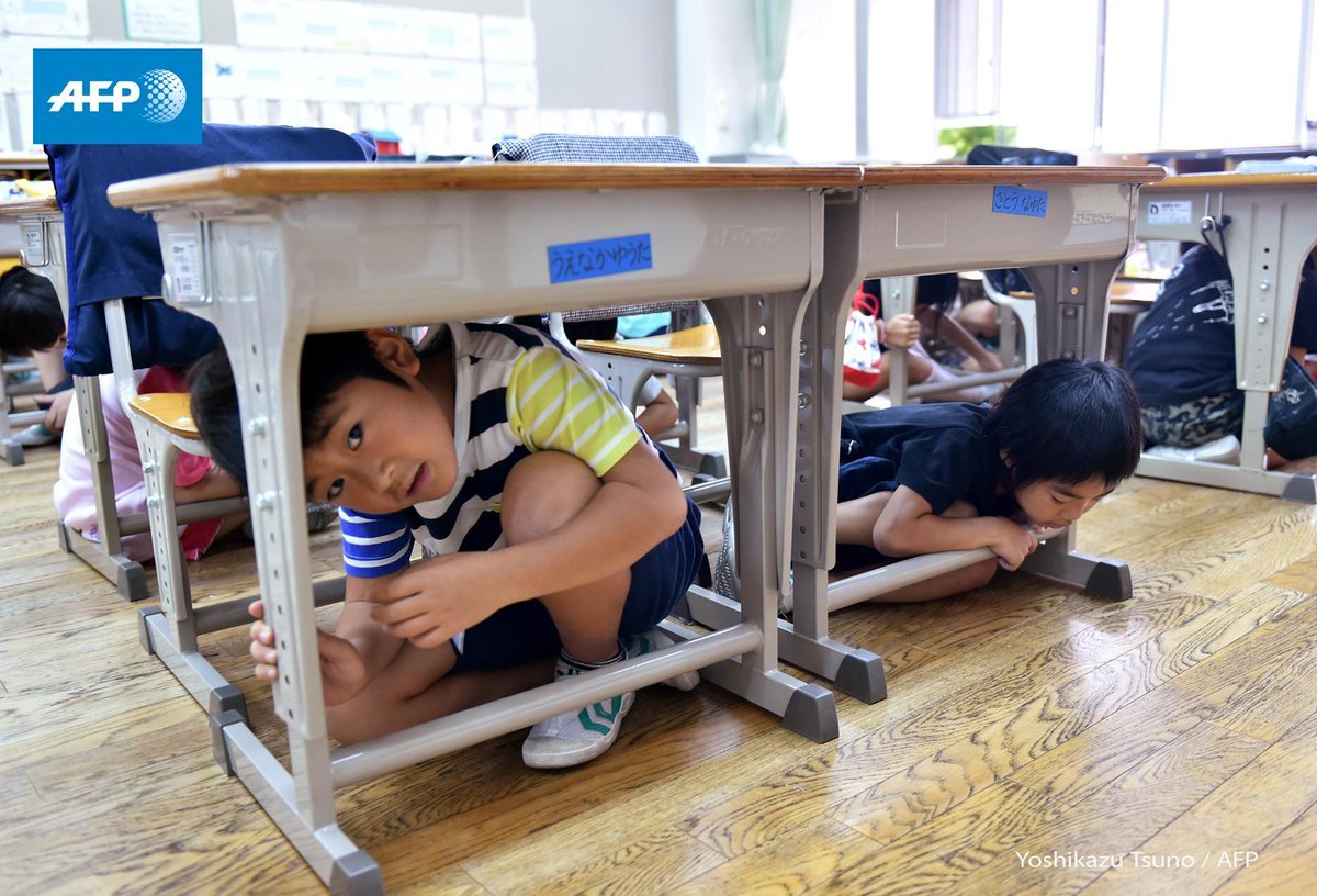 kodomo wa tēburu-no-shita-ni imasu