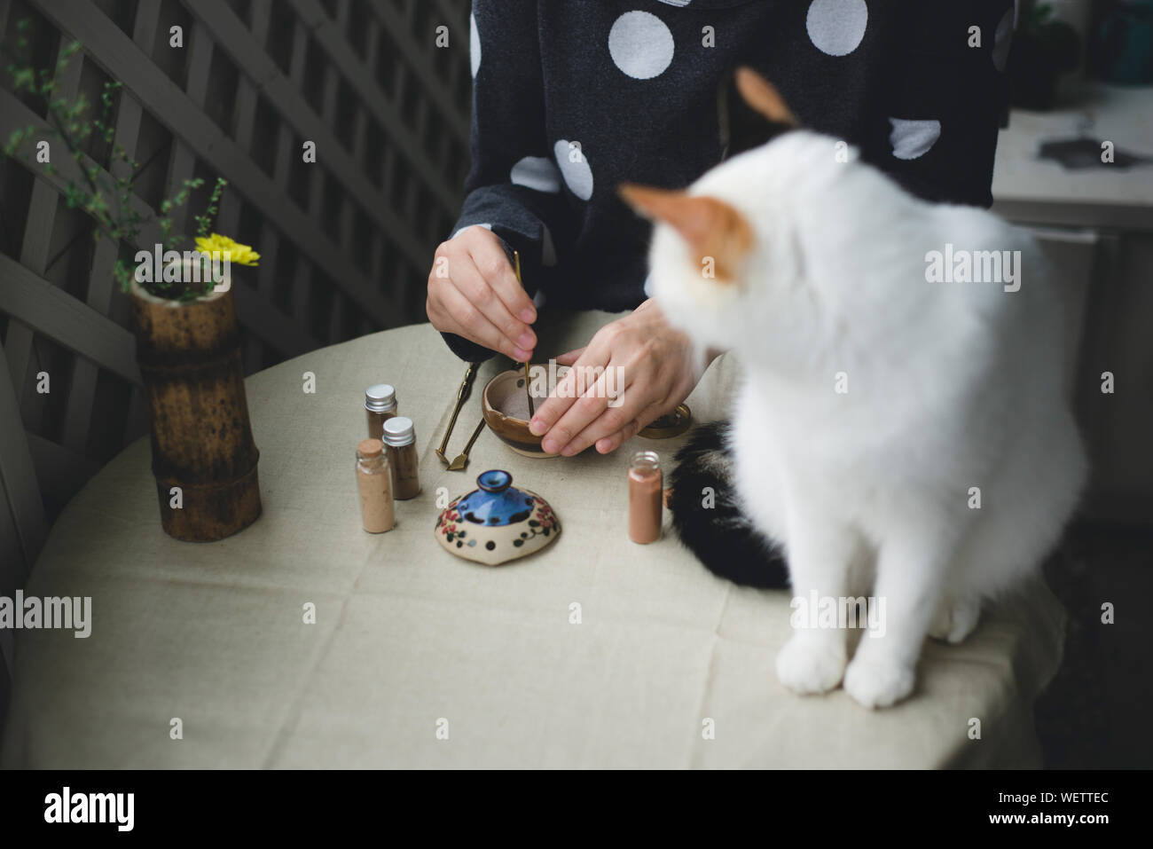 neko-wa tēburu-no-ue-ni imasu