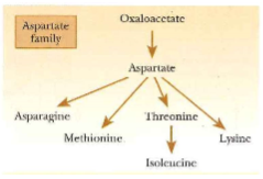 oxaloacetate precursor aspartate, which is a precursor for other aas, all part aspartate family