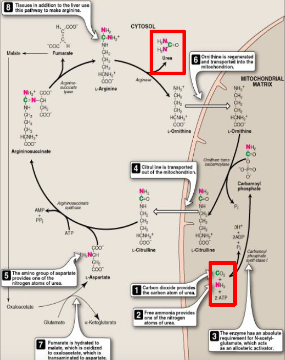 converst toxic NH3 to a safe form (urea) for excretion from the body