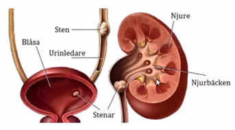 Stenen i övre urinvägar bildas i njuren och när de ligger i calyxhals så ger de oftast ingen smärta (leta då efter annan orsak) om patienten har smärta. Men vad ger smärta vid njursten?