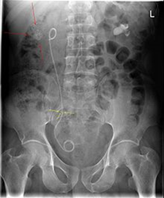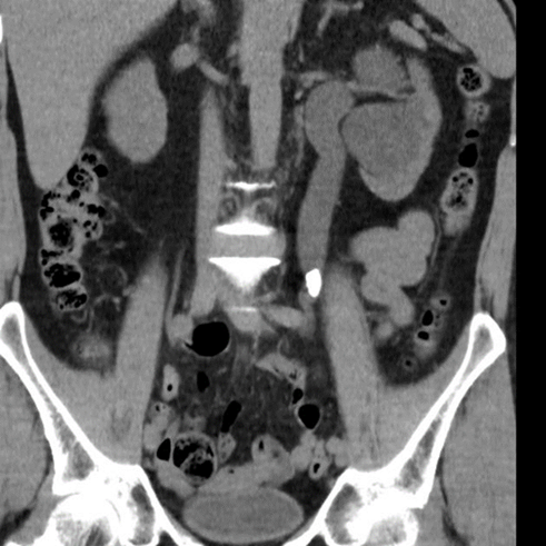 42 årig frisk man söker med akut insättande smärta vänster flank med utstrålning mot ljumske. Kräkts en gång. Intervallartad smärta. VAS 10. Skriker och vankar runt i undersökningsrummet.
