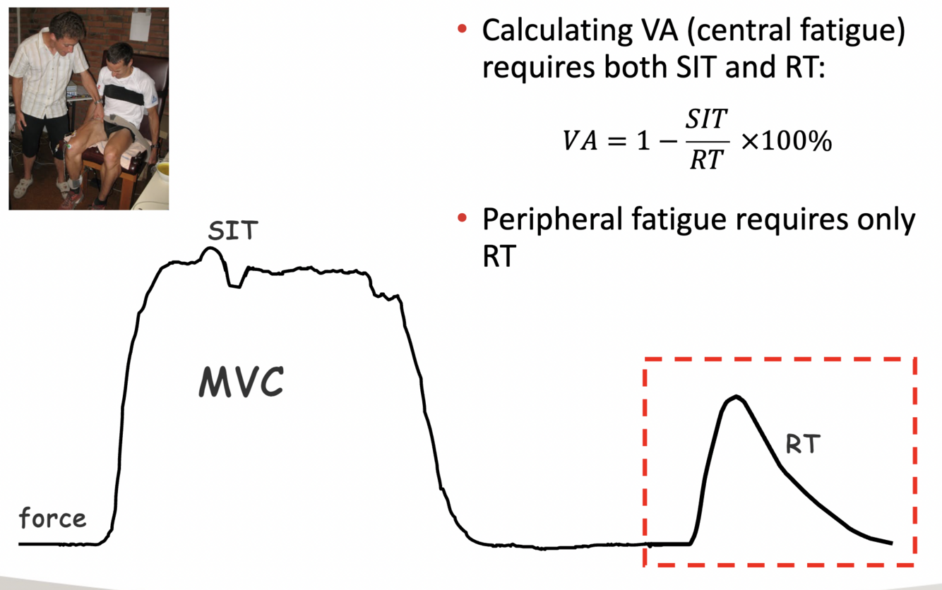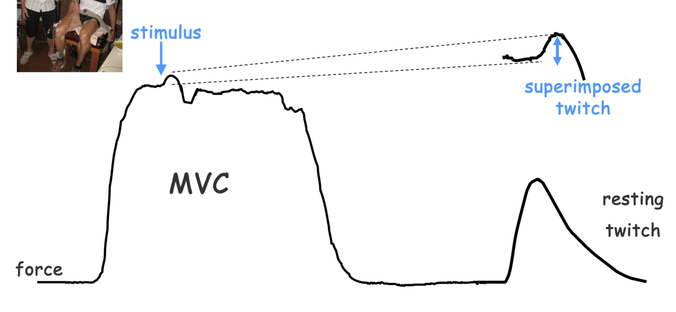 send additional stimulus during MVC and see Super imposed twitch, the muscles your brain couldn’t activate