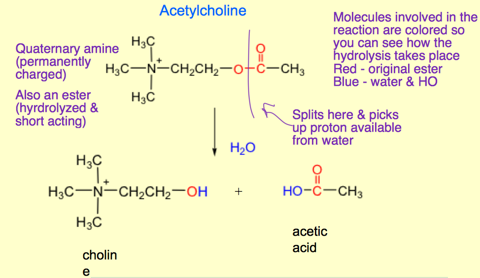 Nonspecific enzymatic ester hydrolysis; Rate of hydrolysis is independent of plasma cholinesterase concentration.
