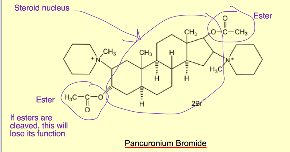 Must be stored in an acid environment because in a basic environment you’re creating a larger population of hydroxyl ions and the hydroxyl can attack the ester and cleave it. So all esters are stored in acid.