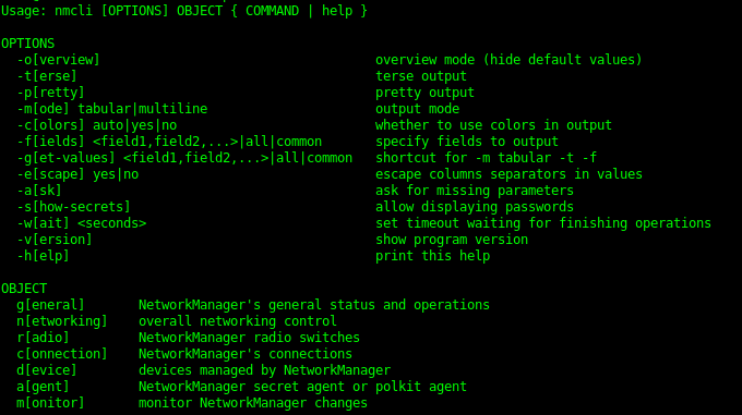 nmcli is a command-line tool for controlling NetworkManager and getting its status.