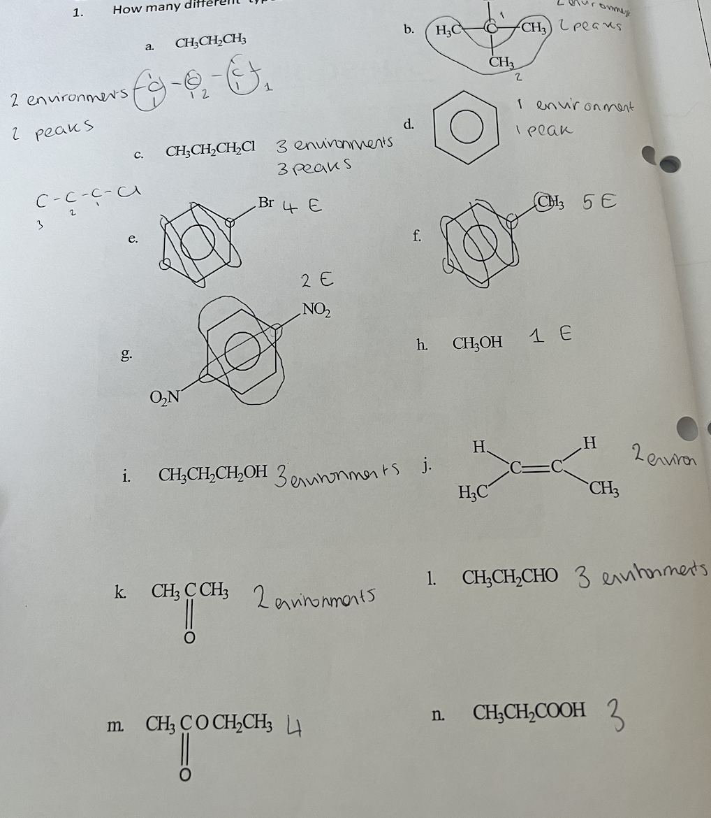 (1) No of peaks tells you the No of carbon environments.