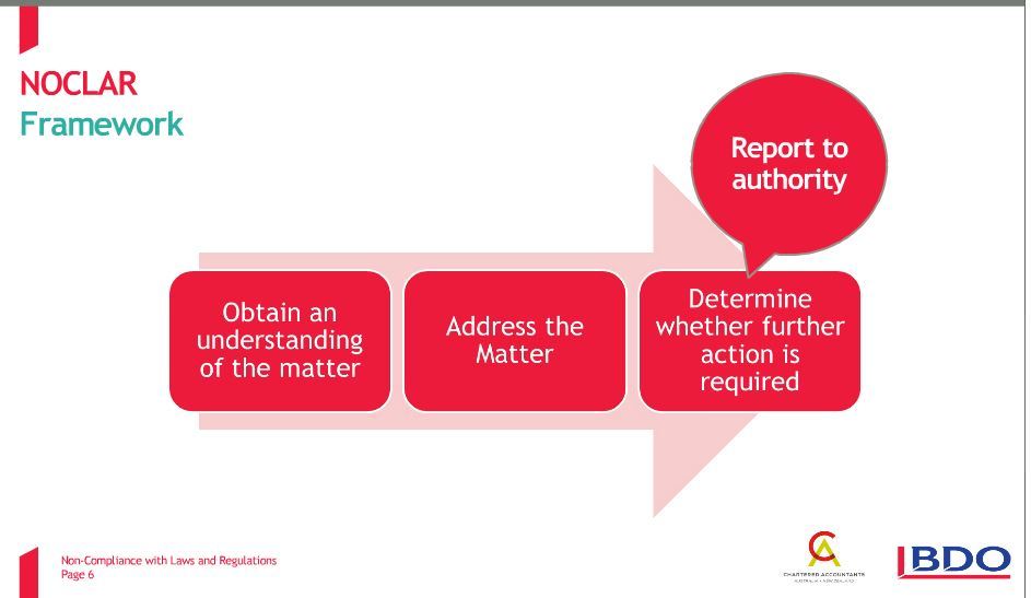It’s a first-of-its kind framework which guides members in what actions to take when we (member as defined) become aware of a potential illegal act committed by a client or employer.