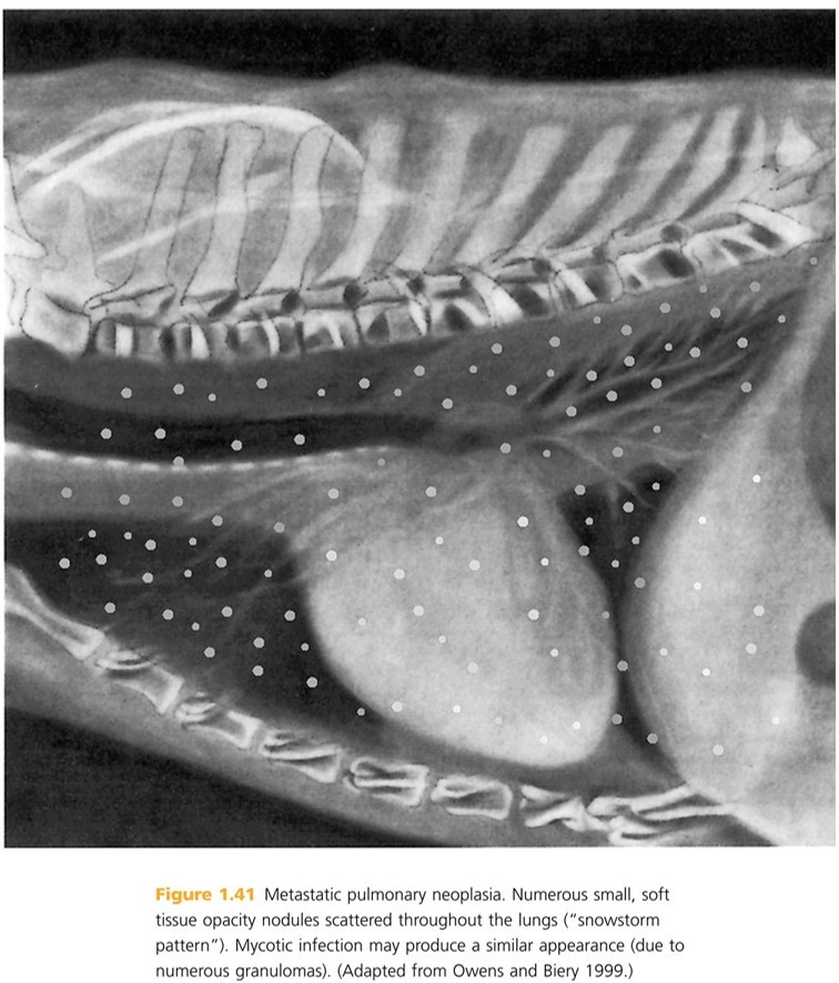 _Neoplasia (_bronchogenic carcinoma -dogs –adenocarcinoma cats- mets to one or more digits) and mycotic infection (hematogenous pneumonia) are the most common